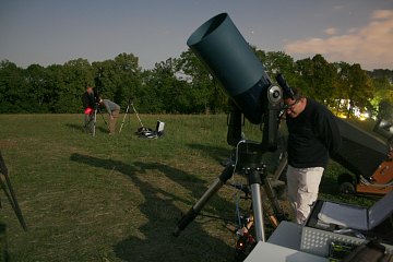Gegen 23 Uhr ziehen die von BOLAM angekündigten Wolken von Westen auf und wir bauen ab. Immerhin, trotz viel störendem Mondlicht konnten wir eine Menge beobachten und testen. Astropraxis lohnt sich immer. |