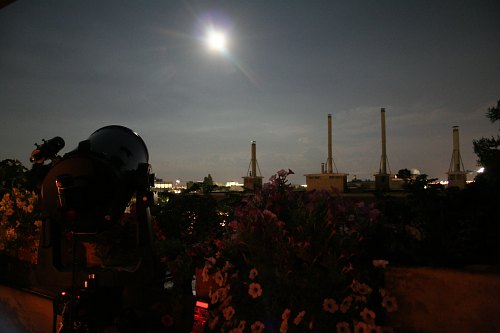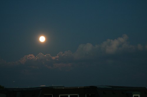 | Bericht: | Wenige Stunden vor Vollmond. Obwohl heute von der Bewölkung her der beste Abend der letzten Tage ist, besser als der spannende Samstag und der farbenfrohe Sonntag, macht eine Ausfahrt keinen Sinn. Mehr als Mond und Jupiter würde kaum sinnvoll zu beobachten sein. Der Mond ist fast voll und steht ein gehöriges Stück höher als gestern. Malerisch geht der Mond im Südosten auf.