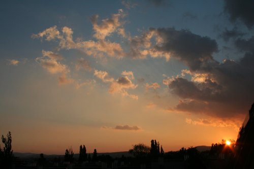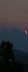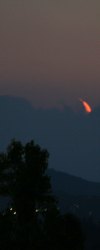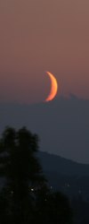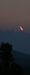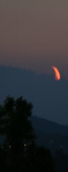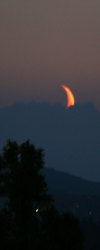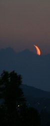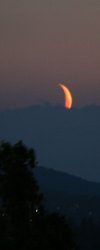 Dunst und hohe Wolken lassen den Himmel "schmutzig" erscheinen, doch erst das ermöglicht dieses tolle Farbenspiel beim Untergang des jungen Mondes.