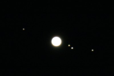 Monde gibt es auch bei Jupiter, der tief im Südwesten steht, und mehr als Monde darf man sich bei dem Seeing in der geringen Höhe nicht mehr erwarten. Die Galileischen Monde stehen heute recht "nett".