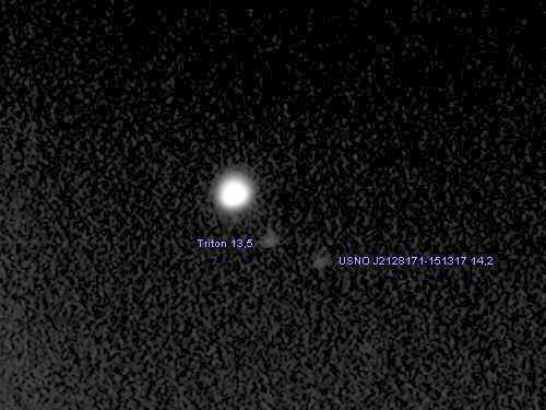 Auch das ist ein seltener Anblick. Jetzt noch zum tief stehenden Neptun. Triton ist ein leichtes Ziel.