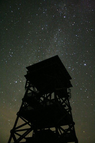 Der Oberleiser Berg ist ein sehr guter Platz zum Beobachten. Tief liegt der Horizont im Osten und Süden, flach auch nach Westen und Norden, unter diesem schon von Kelten und Römern besiedelten Berg. Unter der mächtigen Aussichtswarte liegt eine große, flache Wiese, die reichlich Platz für viele Teleskope bietet. Nach einem kurzen Vortrag von Dr. Wolfgang Wiesinger im Jugendzentrum Oberleis geht es auf den Berg, wo uns ein toller Sternenhimmel und vier Teleskope erwarten: Ein 10" Meade RCX-400 von Dr. Wiesinger (heute können wir uns unter wirklich guten Bedingungen von seinen optischen Qualitäten überzeugen), zwei Meade LX-90 und ein Meade LightBridge Dobson. AstroExperts hat zwei Teleskope und jede Menge Okulare mitgebracht. Das 24mm UWA-Okular mit seinem 82° Gesichtsfeld erweist sich übrigens sowohl am RCX-400 als auch am LX-90 als echer Hammer für Deep Sky Beobachtung. Lichtverschmutzung ist ein Thema, aber nur in Horizontnähe störend.