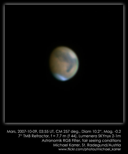 | Bericht: | Klein ist er wirklich noch, aber langsam fängt es an Spaß zu machen. Über der Hellas Region war die Aufhellung sehr deutlich, und die Wolkenhaube über dem Nordpol wächst.