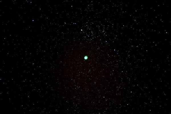 Hier, aus der Stadt, geht die schwache, grüne Gaskoma leider im Himmelshintergrund unter.