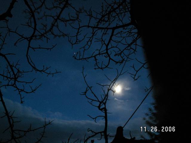 Als Entschädigung gibt es aber noch Venus und Mond. Auf den Spannseilen des großen Bisambergsenders laufen Emsfeuer hinauf, leider verhindert ein heftiger Graupelschauer das Fotografieren! Kein gutes Beobachtungswetter aber ein tolles Naturschauspiel! |