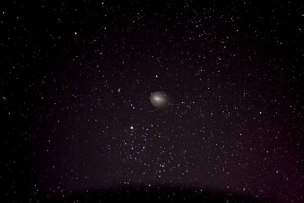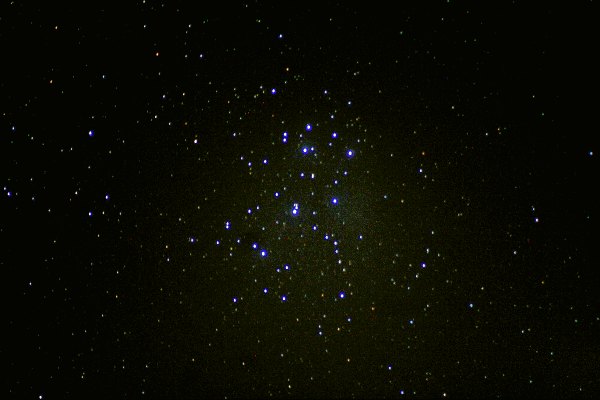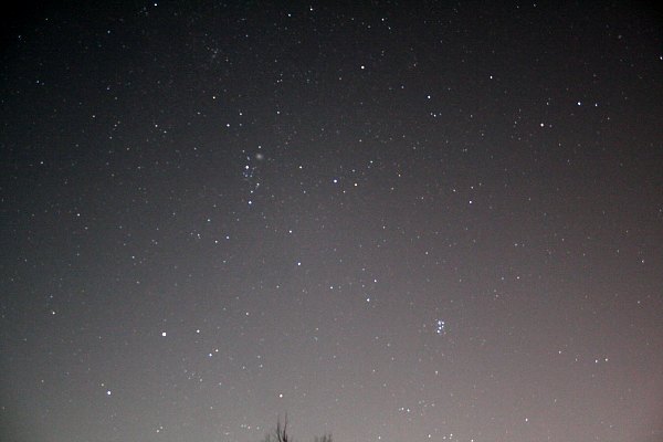 Im Feldstecher ist der Komet ein wirklich beeindruckendes Objekt. Als Größenvergleich ein Foto der Pleiaden mit gleicher Brennweite.