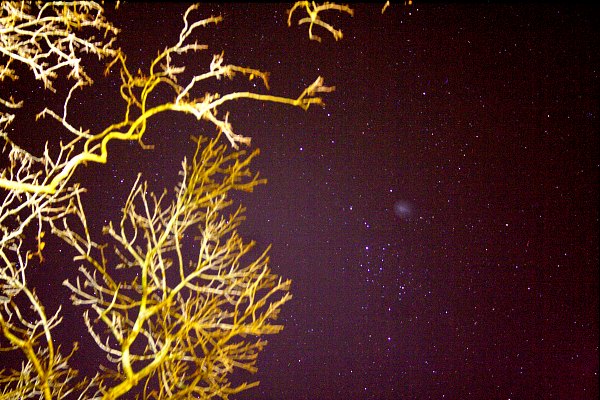 Mit freiem Auge ist zunächst nichts zu machen. Im Feldstecher ist der Komet zu erahnen.