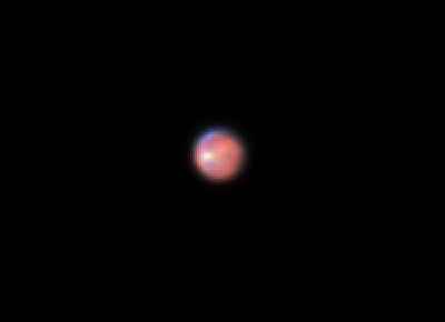 | Bericht: | Bei dem schlechten Wetter der letzten Tage (Wochen) habe ich eigentlich nicht mit einer klaren Nacht gerechnet. Der Aufbau zu Hause war schnell erledigt. Die Webcam habe ich zum Testen schon einige Tage vorher mit "WcRmac" in den "RAW" mode gebracht. Mal schauen was das bringt. Mars habe ich bis jetzt noch nie aufgenommen und der stand so gegen 23h sehr hoch. Bei ca. 390-facher Vergrößerung habe ich mit "Giotto" einige 500/Bilder AVI´s + dark bei 5 Bilder/sec angelegt. Die restliche Bearbeitung erfolgte mit AviRaw, RegiStax-4, PhotoShop und FitsWork. Anbei meine erste Mars Aufnahme.