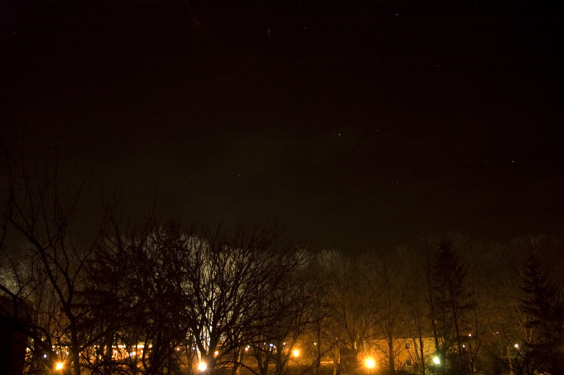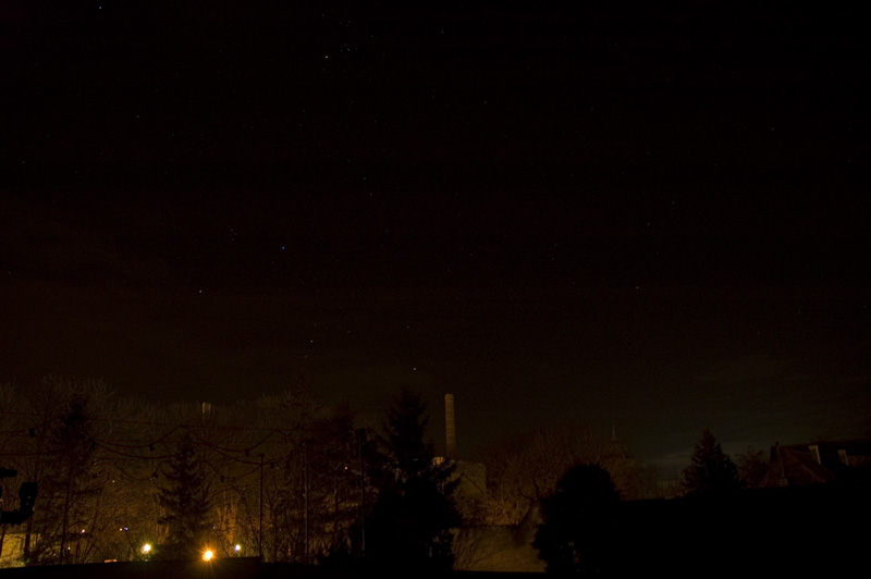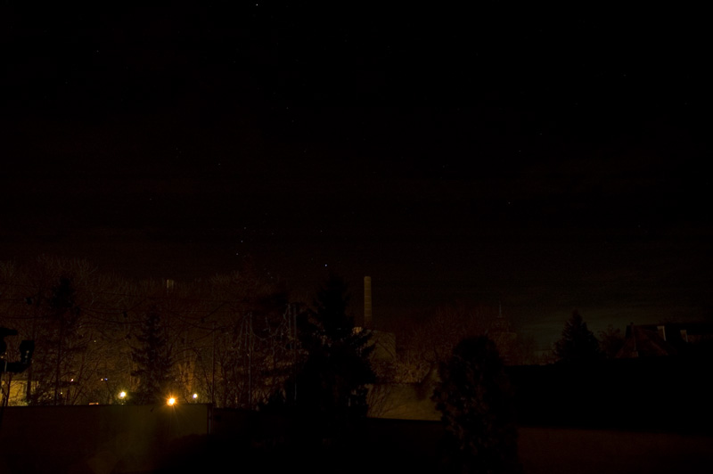 | Bericht: | gestern ist also die Aktion gegen die Lichtverschmutzung des Nachthimmels in Deutschland, der Schweiz und Österreich gelaufen. Ich habe meine Nikon D70 auf manuell gestellt und bei 18mm Brennweite mit offener Blende von 1:3,5 insgesamt 10 Sekunden je Bild belichtet. Das dramatische ist sicherlich auch, dass kaum jemanden die Lichtverschmutzung kümmert, denn weder in Laa an der Thaya, noch im Wiener Raum hat in der Zeit von 20:00h bis 20:05h das Streulicht abgenommen. Da liegt noch sehr viel Aufklärungsarbeit und auch entsprechendes Lobbying vor uns! Auf den Bildern erkennt man den aufgehenden Orion und die sinnlose Beleuchtung unseres Thermenparks. Sogar 2 Bäume werden ganzjährig, die ganze Nacht lang von unten angestrahlt. Sinnlos die Kosten nennen zu wollen. Na ja, die Vögel hat es bisher schon vertrieben. Aber das kümmert auch niemanden. Meine Apelle an die Stadtgemeinde sich wohlwollend zur Kenntnis genommen worden, verändert haben sie nichts. Am Bildrand rechts unten ist übrigens die Wiener Lichtglocke gut erkennbar. Wien liegt 70 km entfernt. Na dann, gute Nacht!