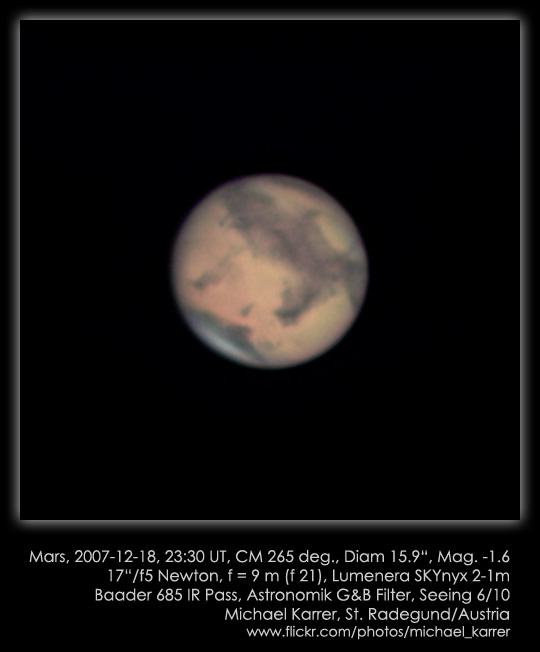 | Bericht: | Der neu geschliffene Spiegel hatte seine Premiere. Die Luftruhe war variabel mit immer wiedr scharfen Momenten. Dank des IR Pass Filters kommen am Mars die Kontraste besonders gut.