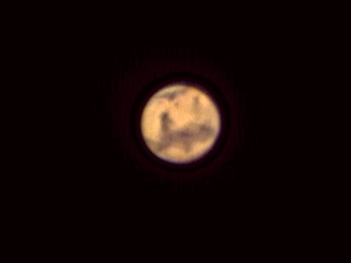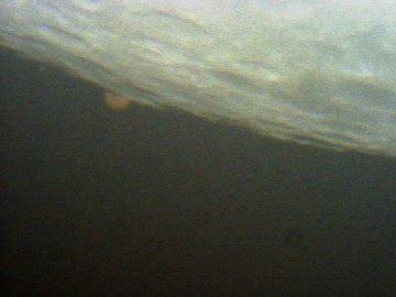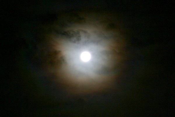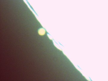 Zum anderen sorgt der Winterdienst für Spannung. Keine 10 Minuten vor dem Beginn der Bedeckung öffnet sich der Rollbalken im nahen Gerätehaus und ein gewaltiger Schneepflug, gefolgt von einem nicht minder gewaltigen Schaufelbagger, begehrt dringend Durchlass. Eine Wetterwarnung vor gefrierendem Regen ist der Auslöser. Zahlreiche Beobachter fliehen vor den beiden monströsen Maschinen, für mein Teleskop geht es sich um 20 Zentimeter aus. Angst! Der Eintritt findet unter dramatischen Bedingungen statt. Immer dichtere Wolken ziehen über Mond und Mars, und mitten auf dem Parkplatz schaufelt der Bagger Streusplitt auf den an allen Ecken und Enden gelb blinkenden Streuwagen. Beide Fahrzeuge blasen Unmengen Abgase in die Luft, es ist kaum auszuhalten. Ich halte den Eintritt auf Video fest. Bedingt durch die Wolken muss ich permanent die Einstellung korrigieren, denn mit Automatik ist bei der SPC 900 nichts zu holen. Hilfe! Panik! Genau im entscheidenden Moment verabschiedet sich das Treiberfenster mit den Kameraeinstellungen. Ob es, bedingt durch Müdigkeit und die eben aufgekommene Hektik wegen des Schneepflugs um einen Bedienungsfehler oder einfach um einen Softwarefehler handelt, der gemäß Murphy's Gesetzen genau im unpassendsten Moment auftritt, kann ich nicht sagen. Tatenlos muss ich zusehen, wie ein Wolkenloch - welch Ironie! - dazu führt, dass der Eintritt komplett überbelichtet ist.