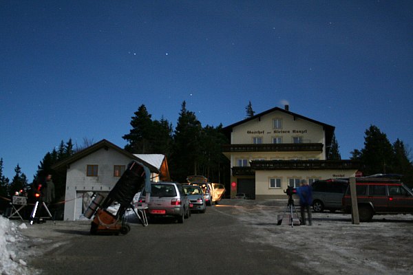 Nach und nach strömen jetzt doch viele Beobachter ein. Zur wohl ungewöhnlichsten Zeit im Jahr entsteht hier ein kleines Teleskoptreffen.