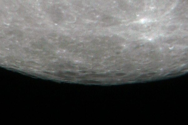 Es ist schon ein Ansatz von (abnehmendem) Terminator zu erkennen. Interessant ist dessen Verlauf im Bereich des Mare Australe. Ein sehr seltener Anblick, der genau die richtige Mondphase und die richtige Libration voraussetzt.