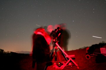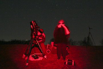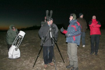 Während ich den Himmel betrachte, taucht zu späterer Stunde noch ein Pärchen mit einem Lightbridge Dobson auf. Eine gute Wahl! Bereitwillig erkläre ich ihnen die Sehenswürdigkeiten des Winterhimmels.
