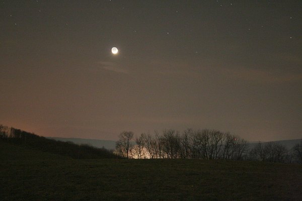 Jetzt zu Galaxien. M108 in unmittelbarer Nähe von M97 ist eine schöne Kantengalaxie. Jetzt beobachten wir klarerweise ohne Filter. Und M51 ist dafür, dass der Himmel doch etwas aufgehellt ist, wirklich sehr schön. "Hrrf!" - "Hrrrff!" - "Uhhhrfff!" - Das ist jetzt aber nahe. Wieder die Stirnlampen ein. Der gewaltige Hund steht unmittelbar hinter dem Dobson. "In das Maul passt mein ganzer Kopf hinein!" konstatiert Roland mit etwas Respekt. Da wir offenbar als Beute nicht in Frage kommen, verlässt uns das unheimliche Tier doch wieder, und bald stellt sich heraus, dass der Arme einfach frustriert war. Er war aus dem Auto, das vor gut einer Stunde einparkte, aus wahrscheinlich recht eindeutigen Gründen ausgesperrt worden. Nach vollbrachter Tat gönnen ihm seine Besitzer noch einen gemeinsamen Spaziergang. Grob fahrlässig ist die ganze Aktion allemal ... Ein letztes Objekt. M3! Nach etwas längerer Suche ist der Kugelsternhaufen eingestellt und im 6,7mm UWA ein absoluter Traum. Die Kugelsternhaufen sind wieder da, jetzt wird es wirklich sehr bald Frühling! Die Wintersternbilder verschwinden im Westen.