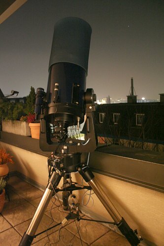 | Bericht: | Ein sehr dunstiger Abend, an sich nicht unbedingt zum Beobachten. Doch die Tests für eine Veranstaltung müssen fortgesetzt werden. Für das Problem mit dem zu kurzen USB-Kabel zeichnet sich eine Lösung ab. Eine aktive Verlängerung, die USB über Netzwerk-Patchkabel überträgt, sollte die Lösung sein. Eine Billigsdorferwebcam dient als Sucher.