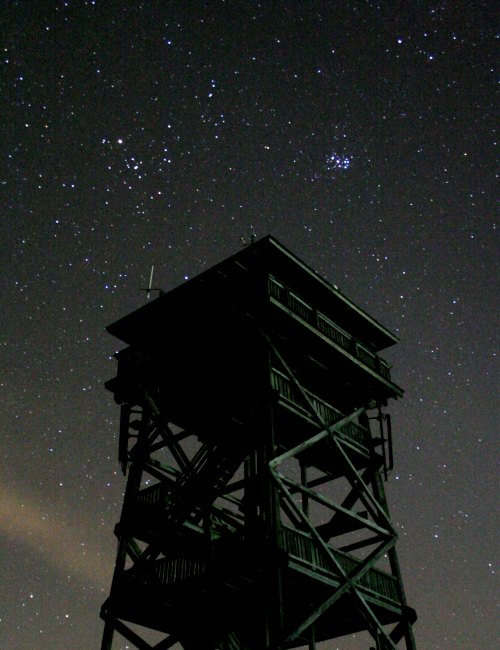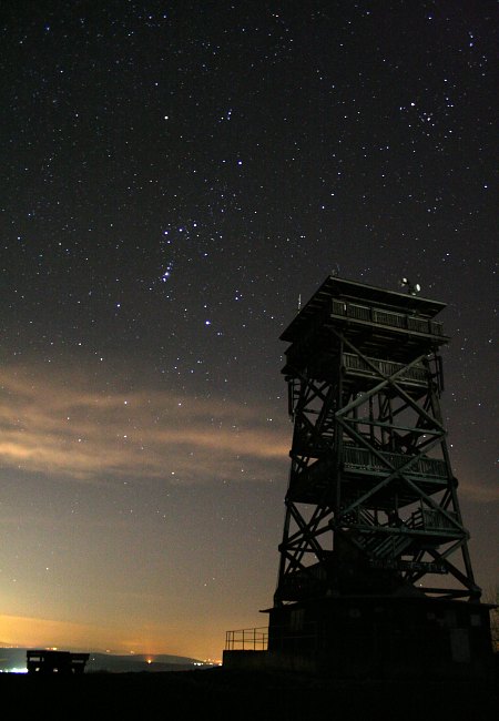 Hyaden und Pleiaden über der Aussichtswarte auf dem Oberleiser Berg