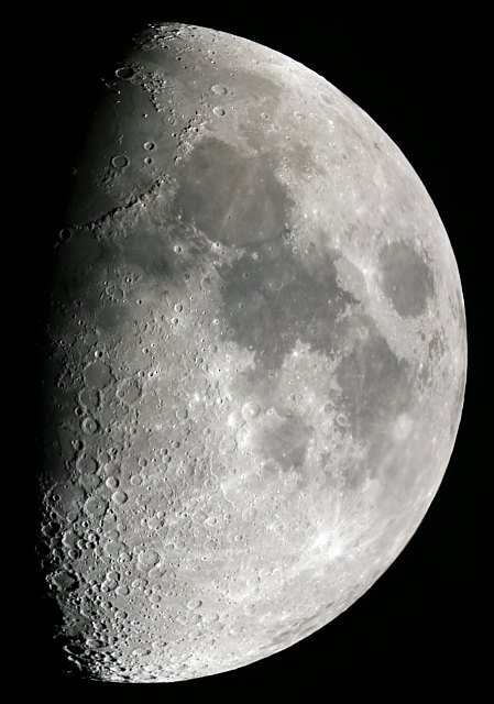 | Bericht: | Noch ist der Abend klar und der Mond steht im Ersten Viertel hoch am Himmel. Es ist bald Frühlingsanfang und das bedeutet, dass der Mond im Jahreslauf in dieser Phase jetzt am höchsten steht. Das Seeing ist anfänglich gut, wird aber rasch schlecher. Daher rasch ein paar Fotos. Alle Aufnahmen hier verkleinert.
