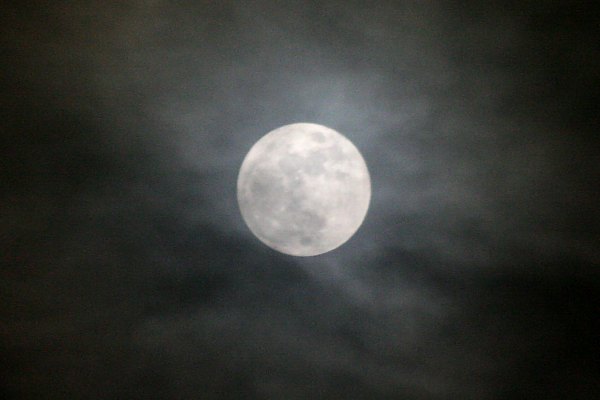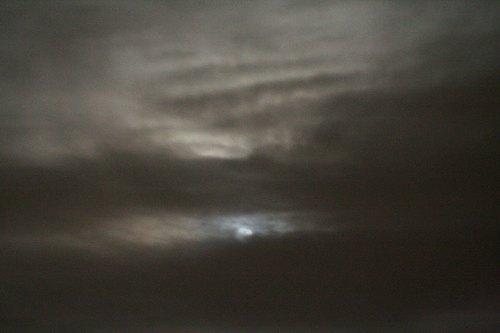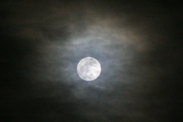 Durch die hohen Wolken wird der Mond sehr gedämpft, so dass sich durchaus interessante Fotos ganz ohne Tricks bei der Bildbearbeitung ergeben.
