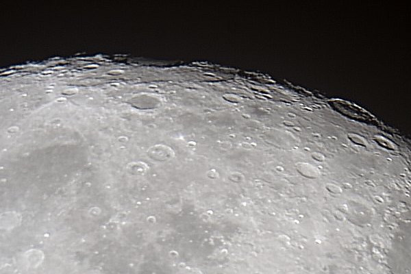 Rund zwei Stunden später steht der Mond schon höher und der ungewöhnliche Terminator kommt jetzt noch besser zur Geltung.