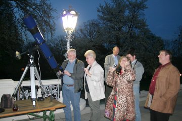 Etwas körnig wegen der hohen ISO, aber alles da: Wolkenstreifen, Ringschatten, Cassini.-Teilung. Toll. Genau so, nur etwas schärfer, sehen wir den Ringplaneten. Fazit: Ein abgerundeter Kurs, mit einem Blick zu den Profis und einer heimeligen Amateurszene am Fernrohr. |