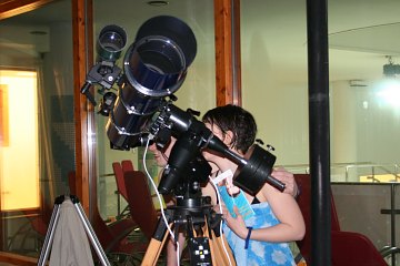 Schon ist der Mond zu sehen und bald wird auch er in die Halle übertragen. Draußen sind es vor allem kleinere Instrumente, die ihn gut zeigen.