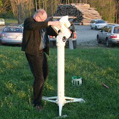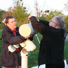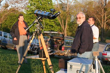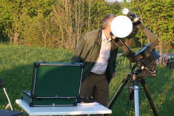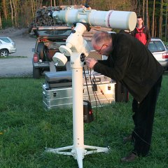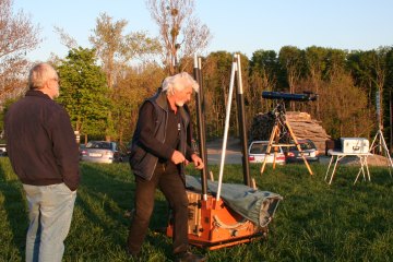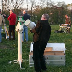Immer mehr Instrumente werden aufgestellt; auch wenn Rolands 18" Obsession nicht gerade das typische kleine oder mittlere Fernrohr ist, er fehlt bei keinem unserer Treffen. Eigentlich schaut das ganze schon aus wie ein Training für das bevor stehende Teleskoptreffen im Weinviertel. Ja, Frühling ist eine gute Zeit für Teleskoptreffen.