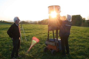 Immer mehr Fernrohre wachsen auf der abendlichen Lagerwiese aus dem Boden