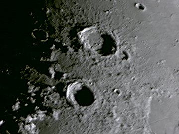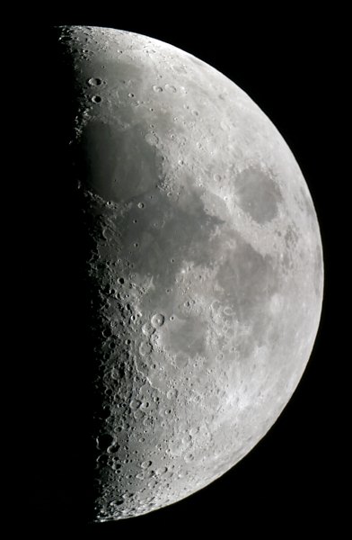 Das nächste Ziel ist der Mond, der in einer beeindruckenden Phase hoch am Himmel steht. Hier erkenne ich bald, dass das Seeing sehr gut ist - beim Merkur, tief am Horizont, war das ja nicht zu erwarten gewesen.