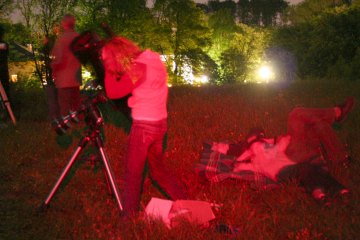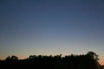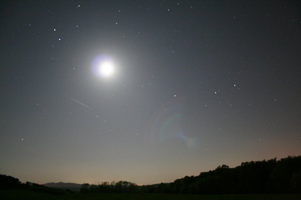| Bericht: | Unter dem Aufhänger "Traumwetter zum Pfingstwochenende" machen wir seit Tagen Werbung zum gemeinsamen Beobachten, und heute, am Pfingstsonntag, ist das Wetter wohl wirklich optimal. Keine Wolke trübt den Himmel, keine Spur von Dunst, kein Hauch von Wind. Schon am Abend, mit der Sonne noch über dem Horizont, leuchtet der Mond von einem tiefblauen Himmel.