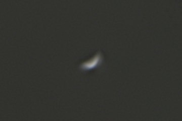 --- und dann ist Merkur das erste Ziel. Rasch findet ihn meine Goto-Montierung und zeigt eine kleine Sichel. Schön!