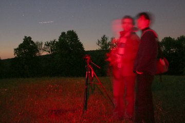 Der Ringplanet ist heute ja wirklich wunderschön, auch farbenprächtig, und visuell bis mit 420-facher Vergrößerung gut zu beobachten. Heute ist auf der Sofienalpe ein interessanter Tag; erstens sind einige Interessierte, darunter auch Familien, gekommen, die gestern im Rahmen des Astronomietags auf der Universitätssternwarte waren. Und zweitens sind heute viele neue und vorwiegend junge Beobachterinnen und Beobachter gekommen, die wir teils noch nie hier angetroffen haben. The Next Generation? Hoffentlich!