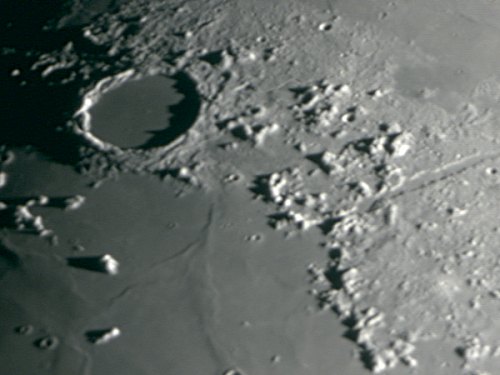 | Bericht: | Heute zeigt sich der Himmel wieder wolkenlos, aber etwas dunstig und mit sehr viel Mondlicht. Ein typischer Abend, um von zu Hause zu beobachten. Ich schaffe es, das anfänglich gute Seeing zu nützen. Erstes Ziel ist der Mond.