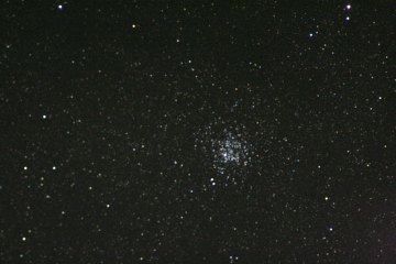 Jetzt sind die Galaxien dran. Bevor sie zu tief stehen, suche (und finde) ich die beiden Galaxientripel im Löwen; erst M65, M66 und NGC NGC 3628, das klassische Leo-Triplet. Ein sehr schöner Anblick vor allem im 21mm Pentax (57x, 1° 8' scheinbares Gesichtsfeld). Dann zur Gruppe M95, M96 und M105 (in der Tat drei Messier-Objekte in einem Gesichtsfeld mit dem 40mm Pentax), dabei ist das eher ein Quadrupel, denn nahe M105 steht noch NGC 3384. Die vier Galaxien sind aber schwächer als M65 und M66. Weiter in den Virgo-Galaxienhaufen. Sehr schön ist M87 und die Gruppe um M84 und M86 ist beeindruckend. Mit diesem Fernrohr erkennt man noch NGC 4435 und NGC 4438 ("die Augen") und NGC 4388. Toll, in dieser Gegend zu stöbern. Der tollste Anblick sind dann die Galaxien M81 und M82 in einem Gesichtsfeld, da kann man sicht nicht sattsehen. Ich bin übrgens ganz stolz darauf, auch nach Jahren mit dem LX-200 und seiner GoTo-Montierung alle Objekte noch ohne Mühe auch händisch einstellen zu können - (fast) ganz ohne Sternkarte. Fast? Auf meinem etwas überzüchteten Handy habe ich PocketSky installiert ... Jetzt sind planetarische Nebel dran, und zwar nur die größeren Exemplare. M57, M27 und M97 sind lohnende Ziele. Am Weg zu letzterem kommt man bei der Kantengalaxie M108 vorbei. Zwei offene Sternhaufen stehen jetzt auch schon günstig. Der unbekannte IC 4665 im Schlangenträger (sehr groß, sehr locker, helle Sterne) und der Klassiker M11. Entgegen der Gepflogenheit dieser Nacht, visuell zu beobachten, halte ich beide im Bild fest, mit fix ans Fernrohr montierter Kamera (jeweils 30s bei 1600 ISO).