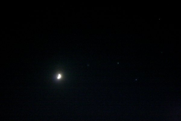 Später, als es endlich etwas dunkler wird, sieht man, dass der Mond heute nahe bei Regulus und Saturn steht.