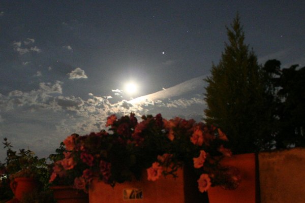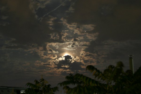 | Bericht: | Der Vollmond nahe dem Sommeranfang beschert uns den tiefsten Vollmond im Jahr, das ist klar. Noch immer steht der Mond sehr südlich der Ekliptik. In Verbindung mit Wolken, die in diesen warmen Tagen des Spätjuni recht häufig sind, gibt das so manch schönes Fotomotiv. Heute ist es zunächst stark bewölkt, doch es klart deutlich auf.