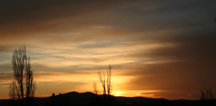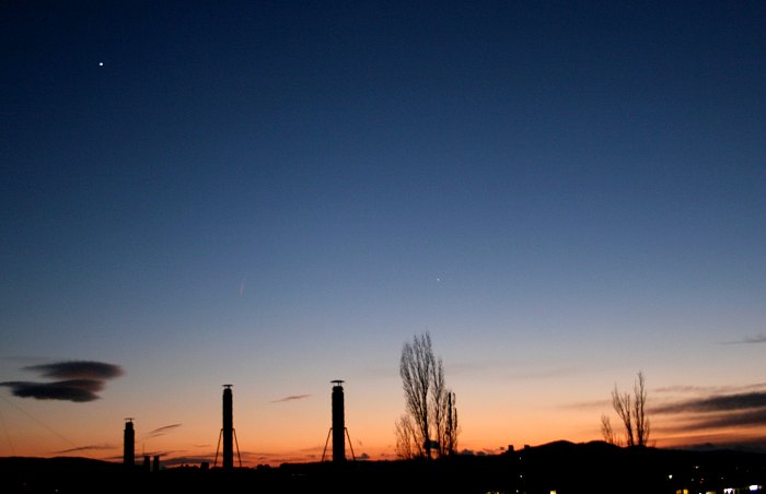 | Bericht: | Wie BOLAM genau vorhergesagt hatte, klart heute mit Sonnenuntergang für etwa zwei Stunden der Himmel auf. Zwei Stunden! Das ist unglaublich viel nach Wochen schlechten Wetters. Eine Beobachtung von Venus und Jupiter sollte sich ausgehen. Ich baue sogar das 12" LX-200 auf, um zu testen, ob noch alles funktioniert. Der Abend beginnt mit einem bemerkenswert grellen Sonnenuntergang, den zu fotografieren sehr unangenehm ist. Da muss in der Tat ein sehr klares Wolkenloch kommen.