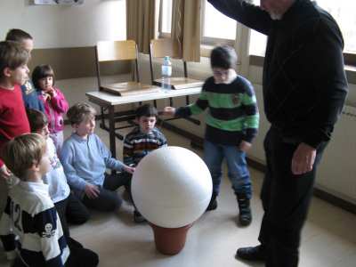 | Bericht: | Die WAA war eingeladen, einer privaten Gruppe von Volksschulkindern in Klosterneuburg Astronomie und Weltraumfahrt näherzubringen. Der erste der beiden Nachmittage war ganz dem Thema Raketen und Space Shuttle gewidmet. Mit Hilfe von einer Kugel und einem kleinen Ball versuchten wir herauszufinden, wie eine Rakete in eine Umlaufbahn gebracht werden kann.