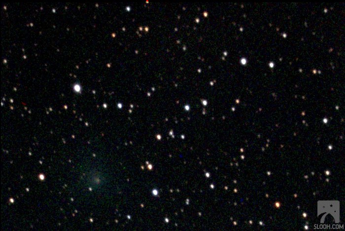 | Bericht: | Der derzeit noch recht schwache Komet C/2008 T2 (Cardinal) wandert derzeit entlang der Wintermilchstraße nach Süden und passiert dabei mehrere Deep Sky Objekte in kurzer Distanz - siehe unsere Spezialseite. In der Nacht vom 31. März auf den 1. April steht die erste Passage des Kometen bei einem offenen Sternhaufen auf dem Programm, es ist der lockere Haufen NGC 1664 an der Grenze vom Perseus zum Fuhrmann. Bedingt durch meinen Kurs "Einführung in die sphärische Astronomie" - und auch bedingt durch die Dämmerung - kann ich erst später beobachten, da hat sich der Komet schon von dem Haufen entfernt. Ja, und bedingt durch bedeckten Himmel in Wien (zur "Abwechslung" wieder einmal) beobachte ich mit Slooh in Teneriffa, wo der Himmel am Abend zum Glück aufklarte, die Wolken sich verzogen.