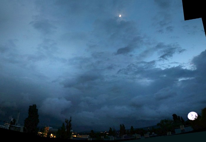 Unglaublich, dass über diesen Wolken der Himmel aufklart und sogar der Mond zum Vorschein kommt.