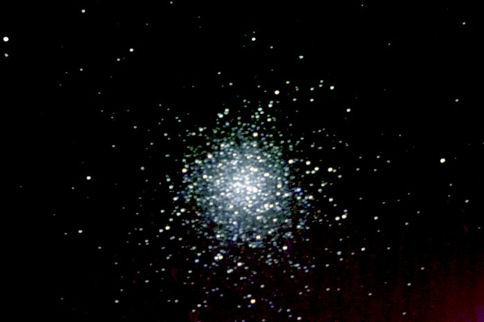 Die Nacht wird ausserordentlich klar. Visuell wird es eine Doppelstern- und Kugelsternhaufentour. Alpha Herculis, M3, M4 (na ja ...), M5, M10, M12, M13. Letzterer ist toll. Ich mache ein Experiment mit dem LX-200 bei f/10 (F=3m):