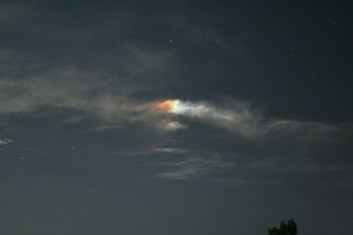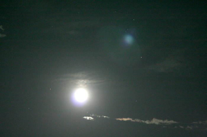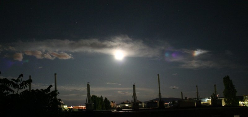 Das seltene Schauspiel eines Nebenmonds! Wir allen kennen Nebensonnen, vor allem aus dem Winter, wenn die Sonne tief steht. Nun, im Sommer steht der Vollmond tief und da kann es schon passieren, dass Cirren einen Nebenmond ergeben. Der von heute Nacht ist wirklich extrem hell.
