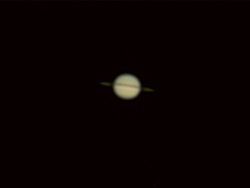 Es wird die ganze Zeit eine Wolkenschieberei. Es dauert lange, bis Saturn aus den Wolken kommt, und dann steht er schon recht tief und ist vom Seeing mitgenommen.
