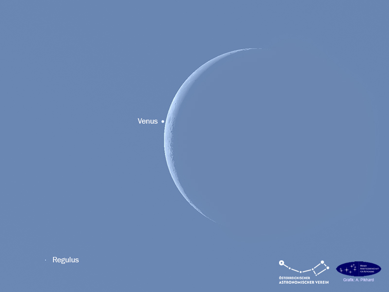 Wann wieder? Wir müssen nicht allzu lang auf die nächste Venusbedeckung durch den Mond warten. Am 14. September 2026 ist es wieder so weit, also knapp ein Jahr nach dieser Bedeckung. Die nächste Venusbedeckung, die bei uns zu sehen ist, findet dann am 25. Mai 2028 statt. Beide Bedeckungen werden, wie heuer, am hellen Tag stattfinden. Noch früher kommen wir in den Genuss einer Bedeckung von Regulus durch den Mond. Schon am 10. Dezember 2025 ist es so weit, allerdings ebenfalls bei Tag. Am 29. März 2026 dürfen wir uns auf eine Regulus-Bedeckung auf dunklem Himmel freuen. © Wiener Arbeitsgemeinschaft für Astronomie. Jede Wiedergabe von Text oder Grafiken aus dieser Seite bedarf der vorherigen schriftlichen Erlaubnis und ist auch dann nur unter Angabe der Quelle (Autor und Organisation) gestattet. |